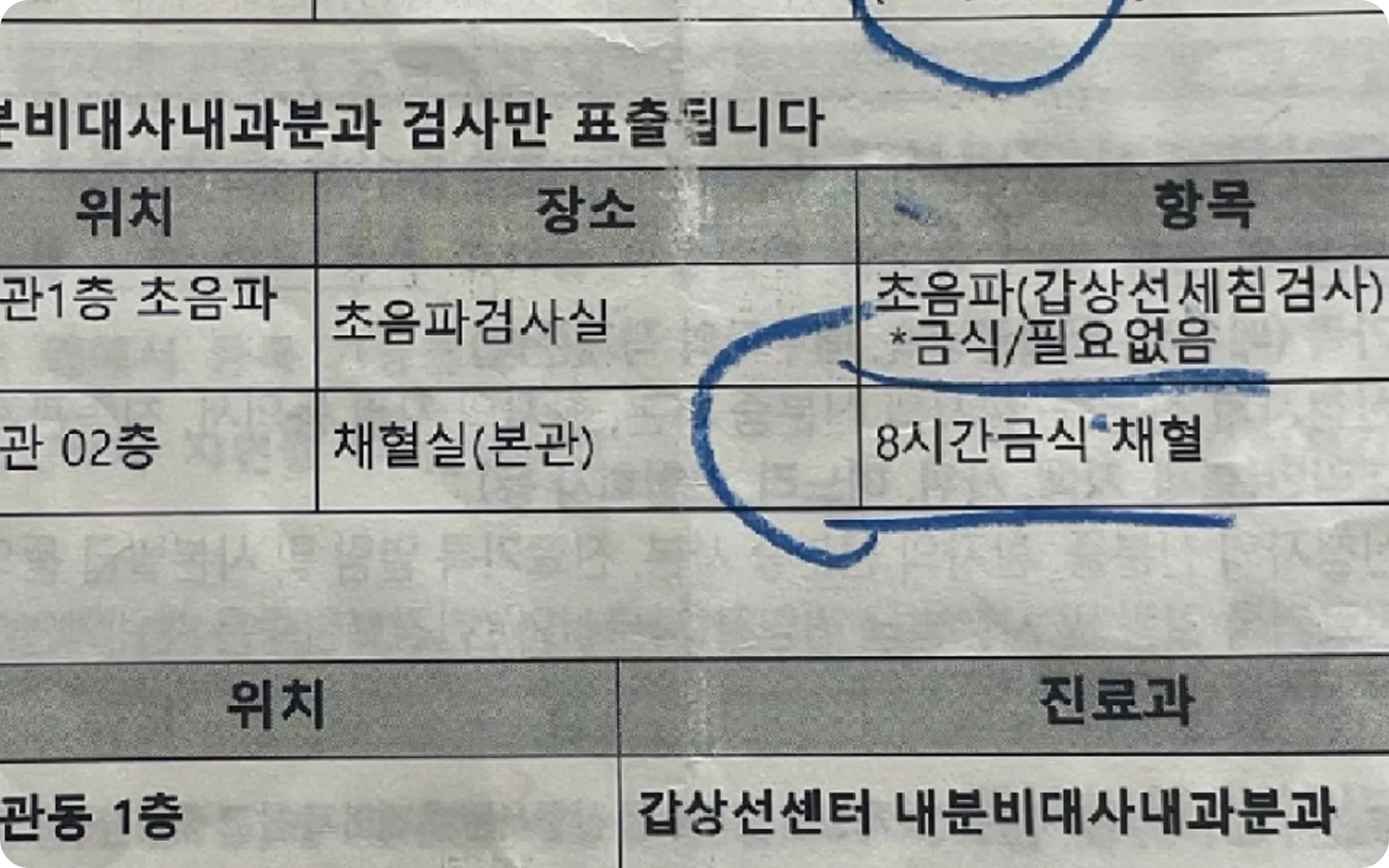대학병원은 동네병원이 아닌 3차병원이라 소견서랑 초음파같은 것을 필수로 가져가야 진료가 가능하기 때문에, 소견서+초음파CD를 구워갔다. 아버지와 네이버 갑상선 포럼(좋음) 카페에서 추천하는 갑상선 내과의사분 예약하고 찾아갔는데 예약은 꽤나 걸렸다. 거의 정확하게 한 달정도 뒤? 아픈사람이 많나보다라고 생각했다.